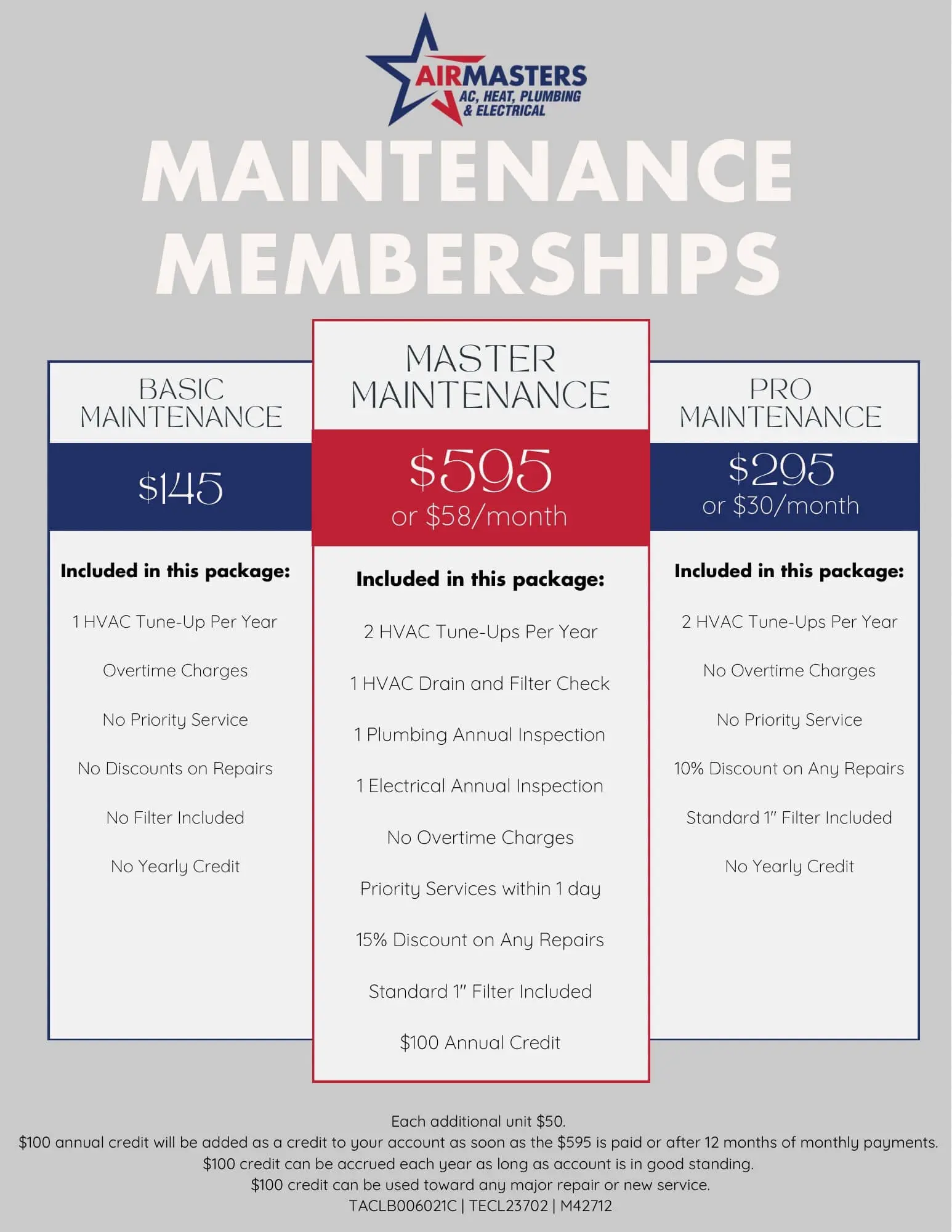 Explore our current deals and contact Airmasters today to schedule reliable HVAC, plumbing, or electrical service.