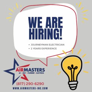 At Airmasters AC, Heat, Plumbing and Electrical, we’re more than just a team—we’re a family dedicated to excellence, safety, and innovation. If you’re a skilled journeyman electrician ready to make a difference, apply today and help us light the way for homes and businesses in Cleburne, TX!